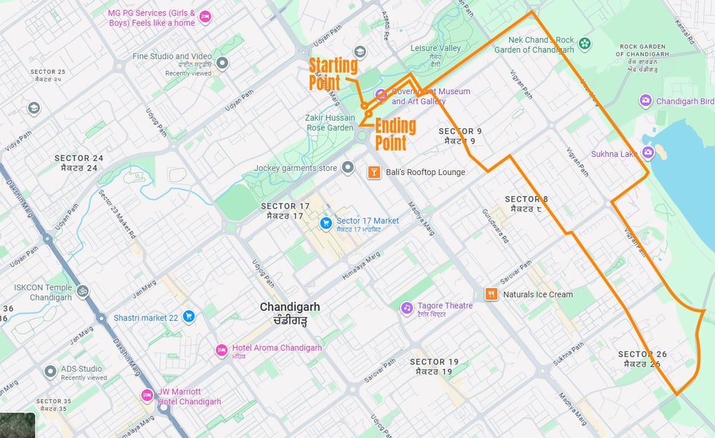 Explore the official Gedi Route—with the run starting at Sector 10 and following the cultural pulse of Chandigarh. The map will guide runners through key sectors and iconic locations, ensuring a smooth, enjoyable race experience.